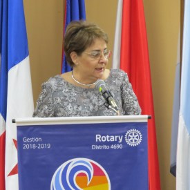 La Presidente de Rotary Club Cochabamba, c.r. Gaby Burgoa se dirige a los presentes.